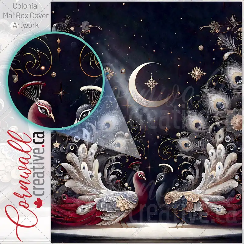 Red and Blue Peacock Couple Colonial Mailbox Cover