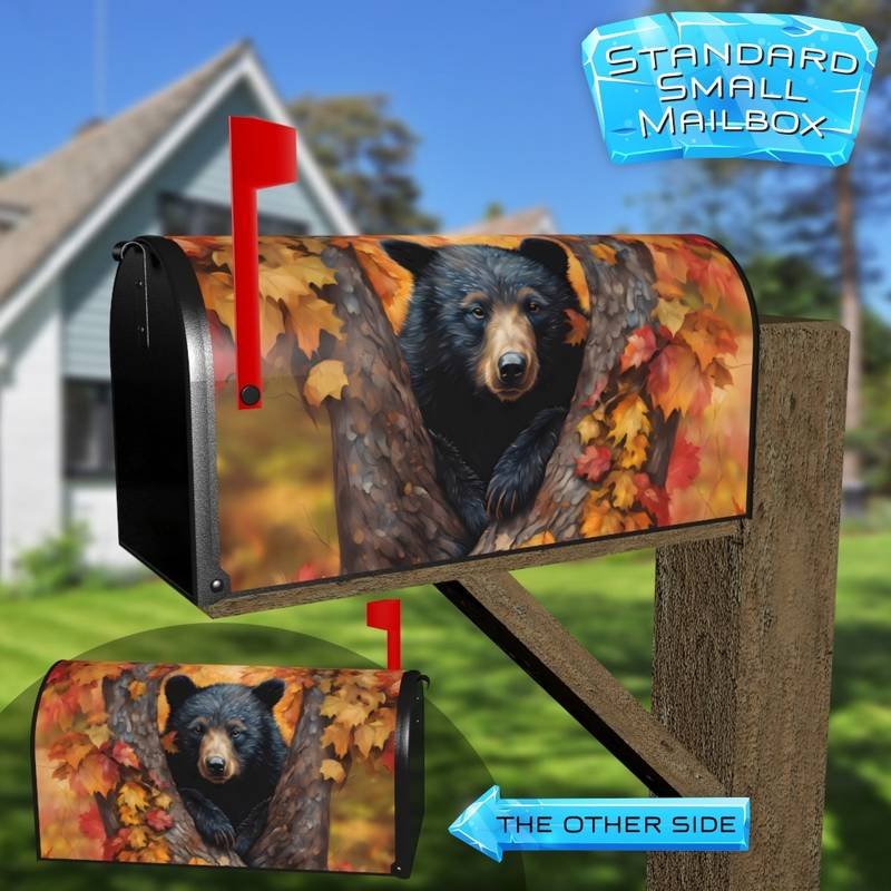 Pretty Autumn Black Bear Cub Wall-mounted Townhouse Mailbox Cover