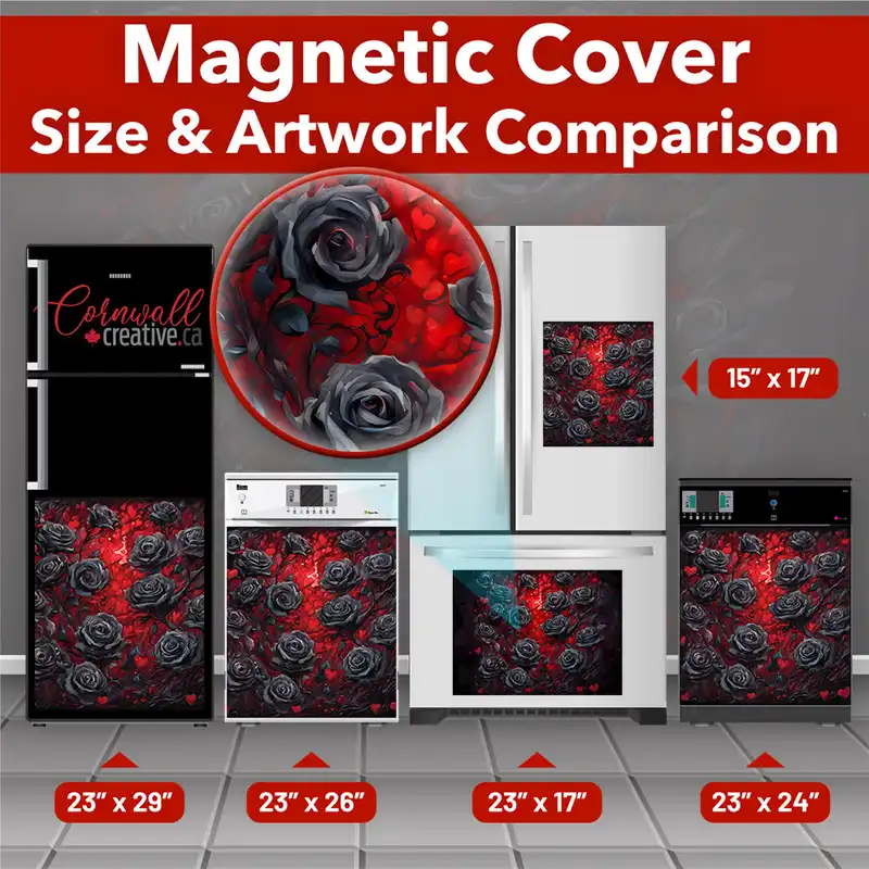 Black Valentine’s Day Roses Magnetic Dishwasher Door Cover