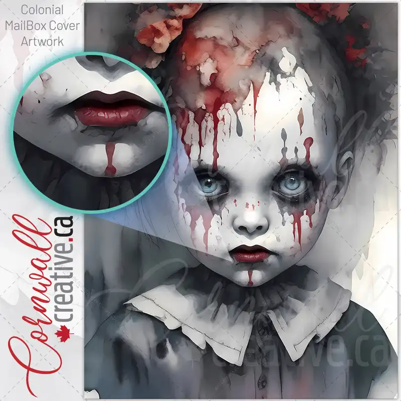 Bloody Doll Face Colonial Mailbox Cover