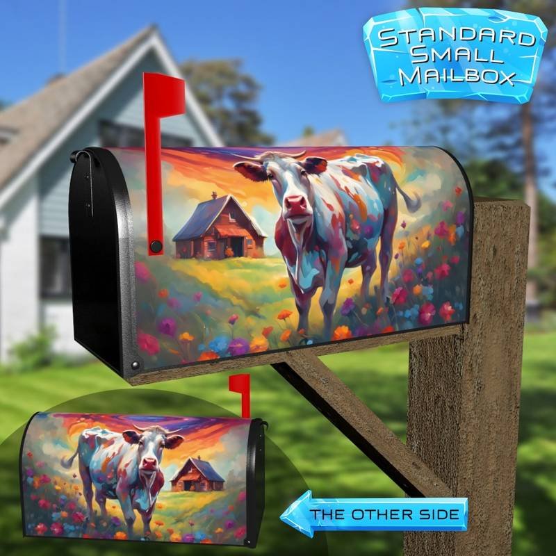 Colorful Farmhouse Cow Rural Farm Mailbox Cover