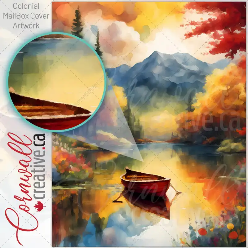 Summer Lake with Fishing Boat Colonial Mailbox Cover