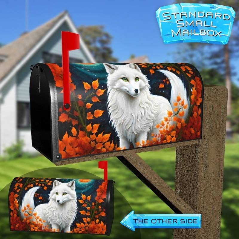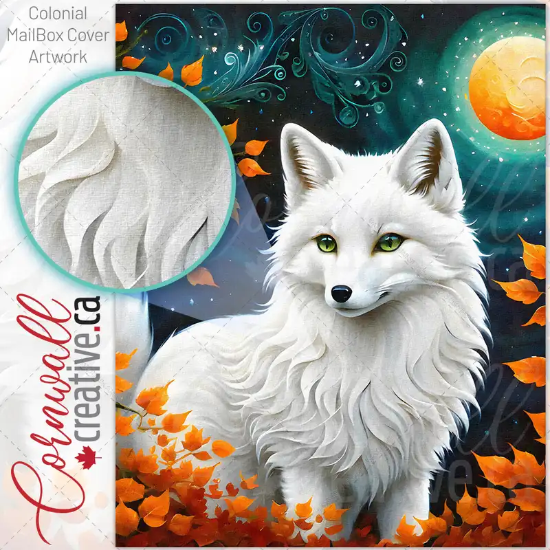 Pretty White Fox Colonial Mailbox Cover