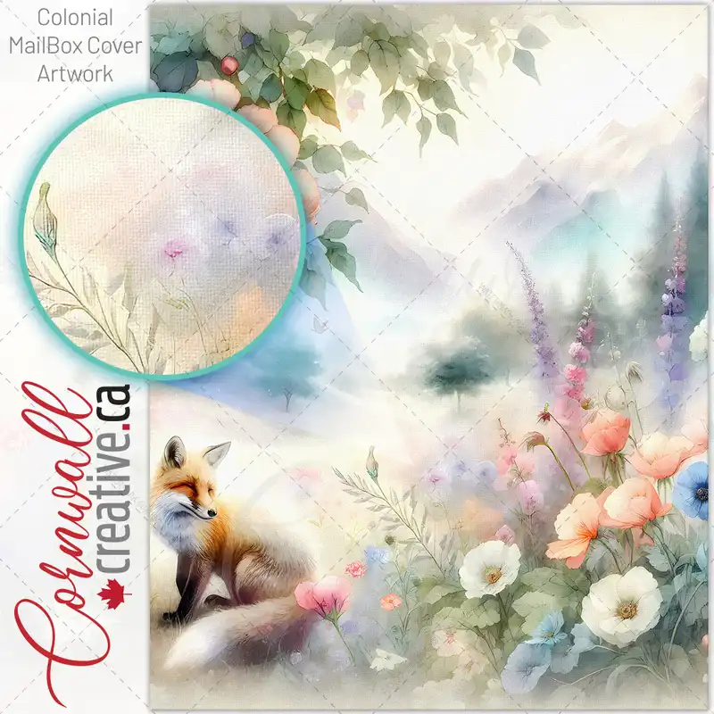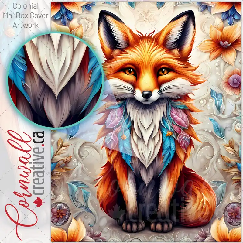 Native Fox and Flowers Colonial Mailbox Cover