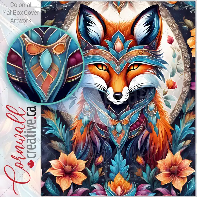 Pretty Native Folk Fox Colonial Mailbox Cover
