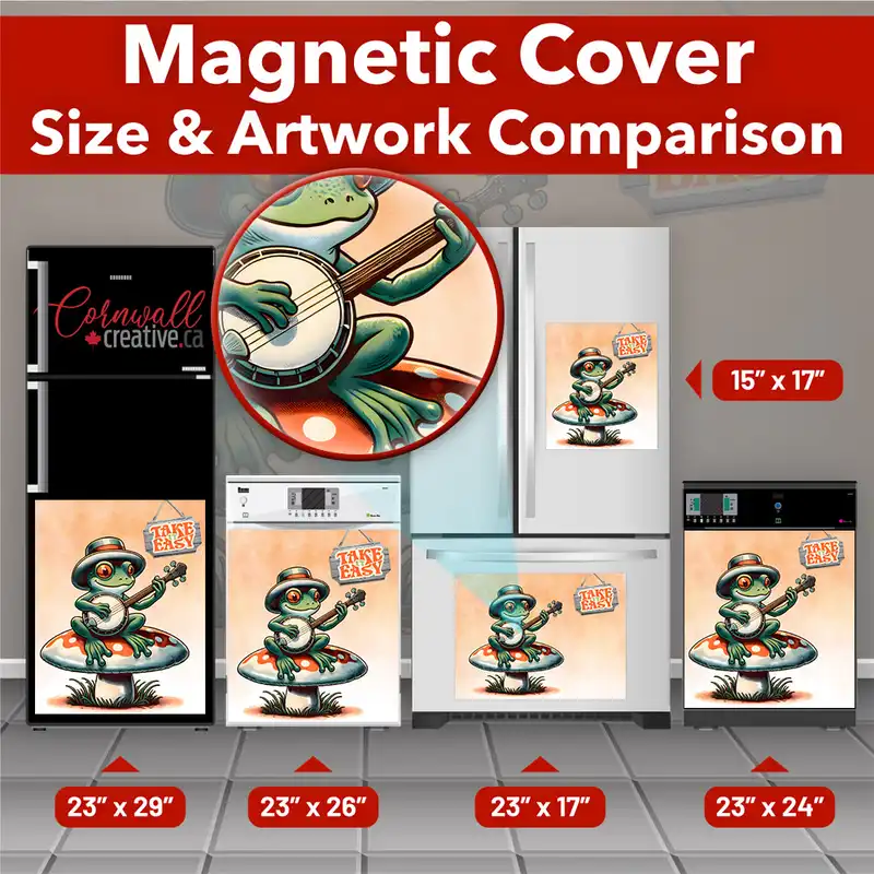 CA$19.95Decorate your kitchen effortlessly with this stunning Vintage Frog on a Mushroom with Banjo Magnetic Dishwasher Door Cover! Keep in mind that while this cover works with most dishwashers, some stainless steel and plastic doors might not hold magnets. There are two types of stainless steel: one that attracts magnets well and another that does […]