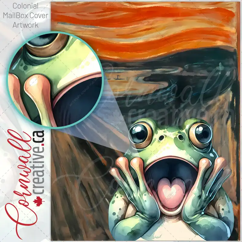 Scream by Edvard Munch with a Frog Rural Farm Mailbox Cover