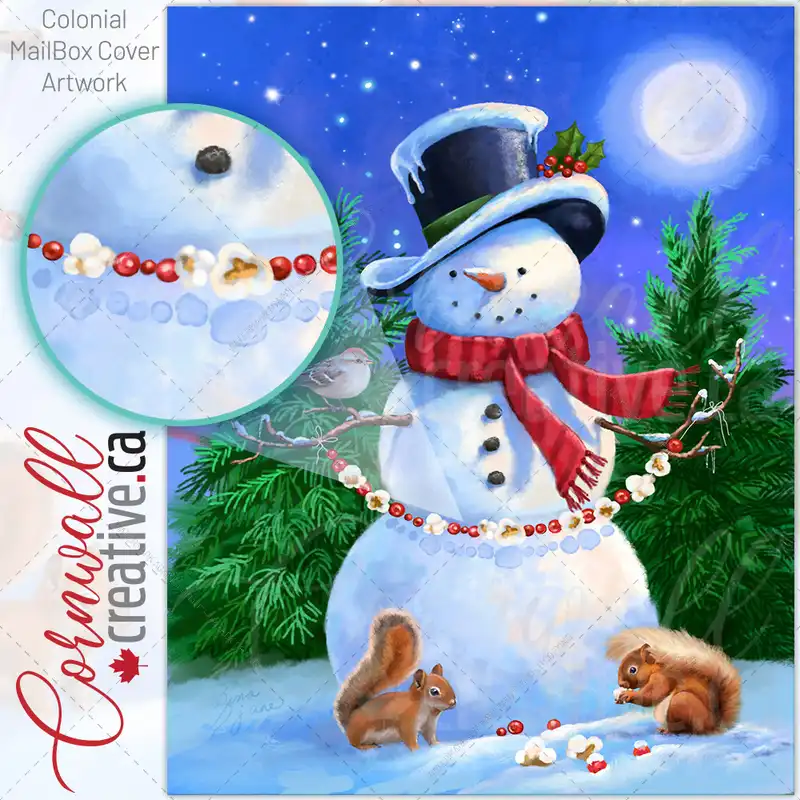 Theodore the Snowman with a Garland Colonial Mailbox Cover