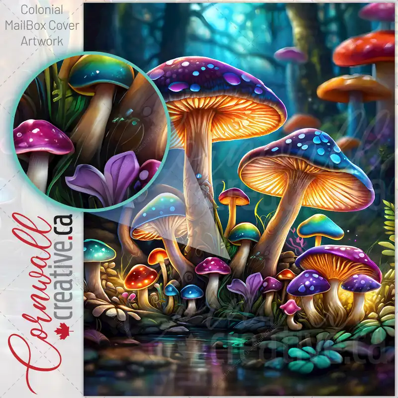 Glowing Mushrooms in the Forest Colonial Mailbox Cover