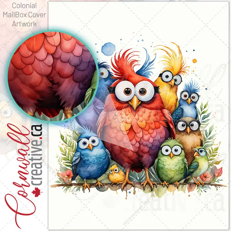 Googly Eyed Birds Rural Farm Mailbox Cover