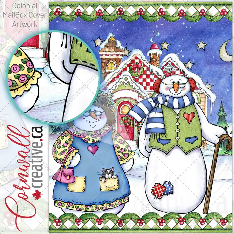 Grandma and Grandpa Snowman #2 Colonial Mailbox Cover