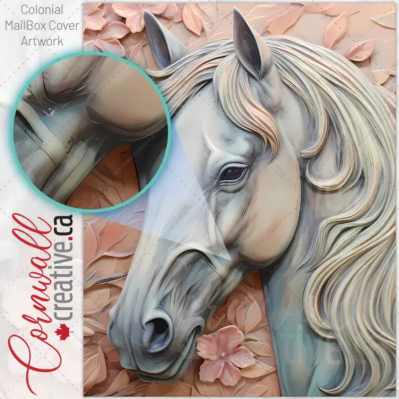 Tooled Leather Grey Horse Colonial Mailbox Cover
