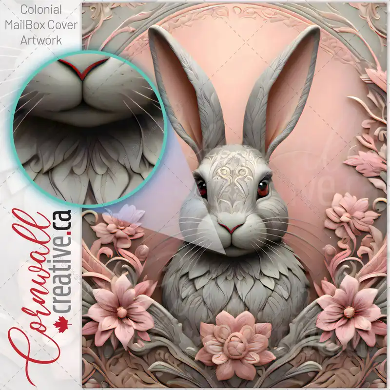 Tooled Leather Grey Bunny Colonial Mailbox Cover