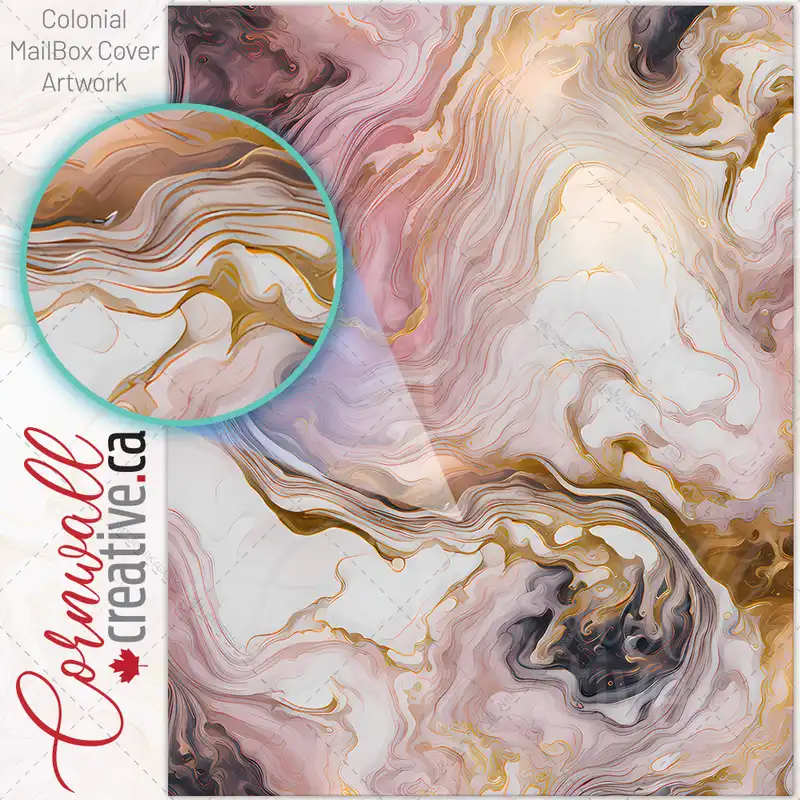 Grey, Pink and Gold Marble Pattern Colonial Mailbox Cover