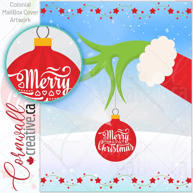 Grinch’s Hand and Ornament Colonial Mailbox Cover