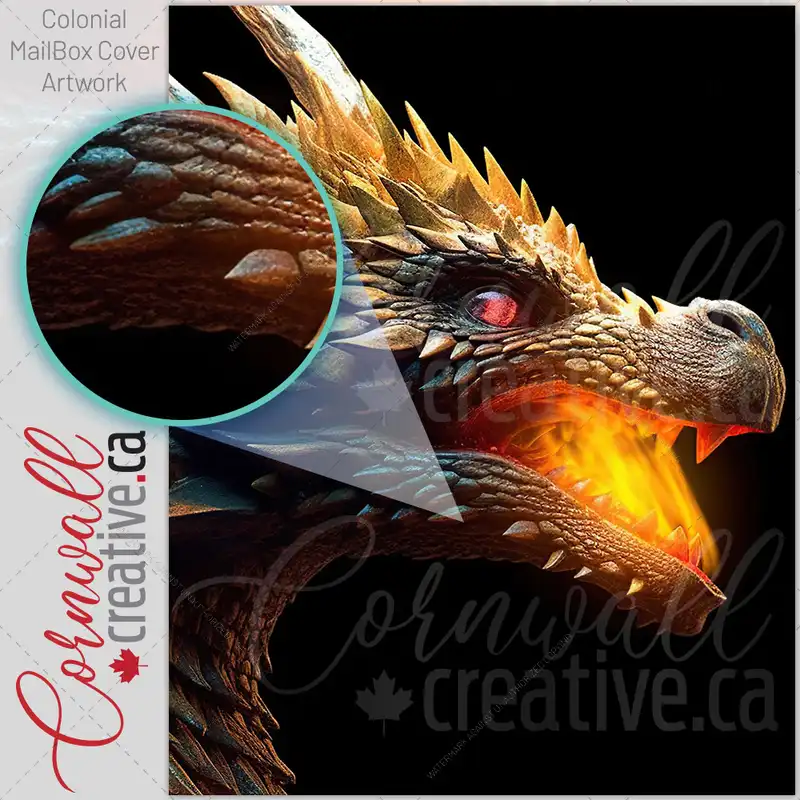 Colorful Head Of A Dragon Breathing Fire Colonial Mailbox Cover