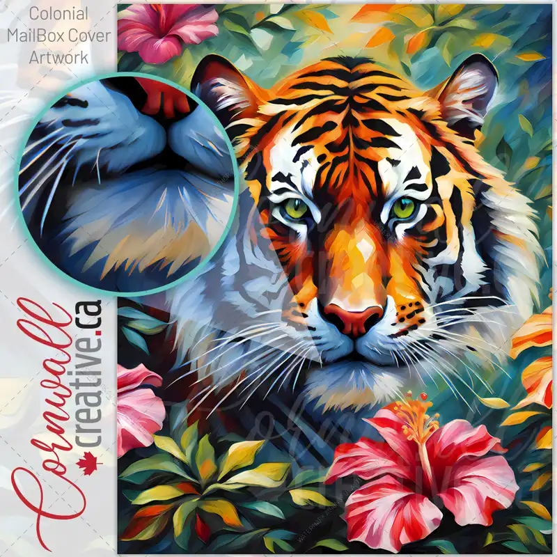 Beautiful Tiger in the Hibiscus Bush Colonial Mailbox Cover