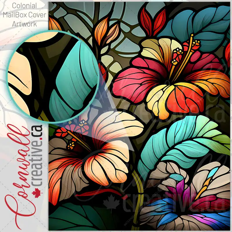 Stained Glass Hibiscus Flowers Colonial Mailbox Cover