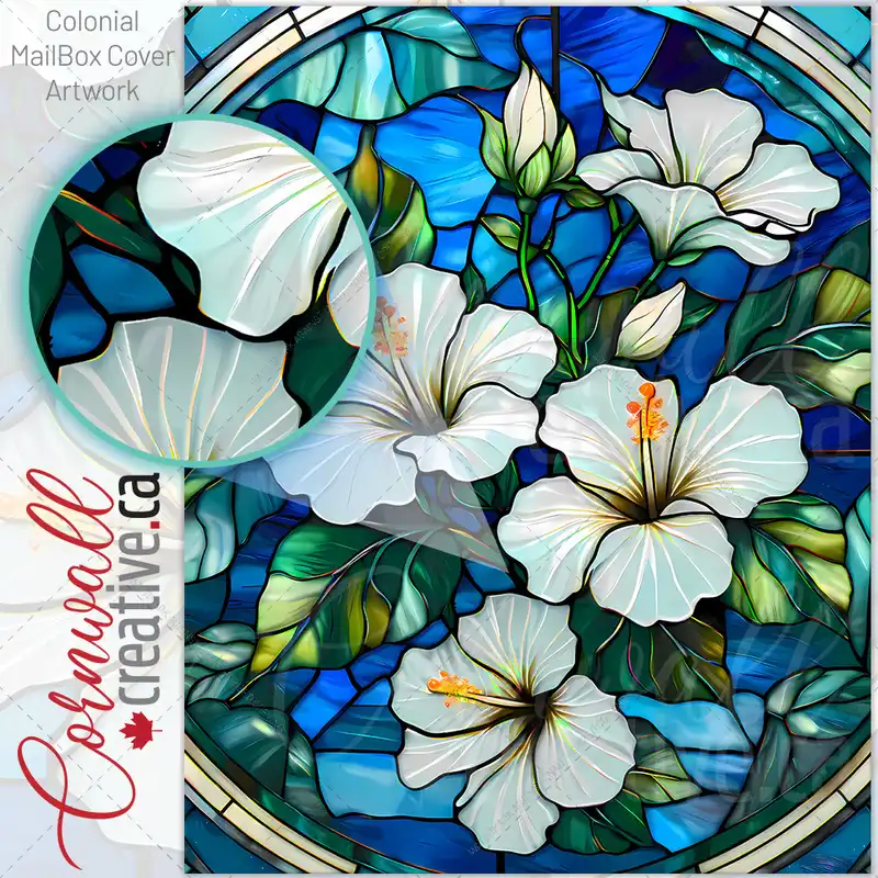 Stained Glass White Hibiscus Colonial Mailbox Cover