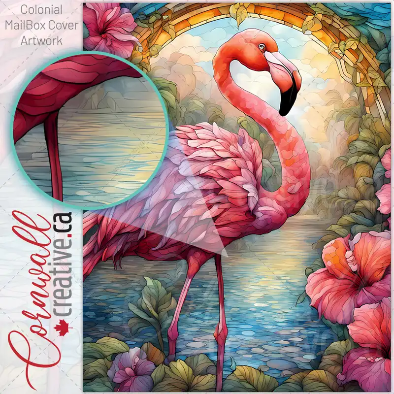 Stained Glass Hibiscus and Flamingo Colonial Mailbox Cover