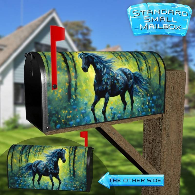 Abstract Black Horse Rural Farm Mailbox Cover