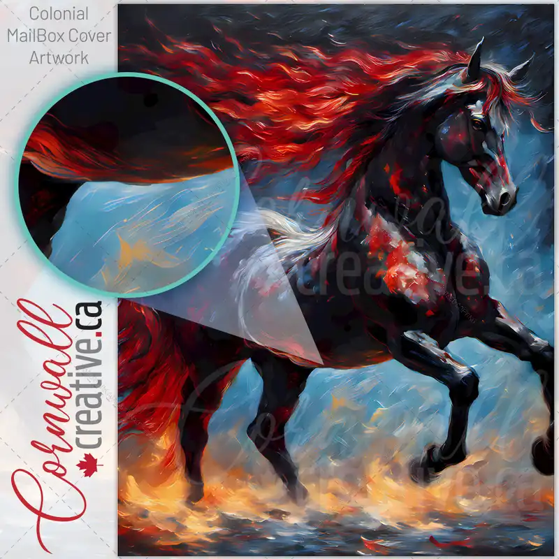 Abstract Black Horse Colonial Mailbox Cover