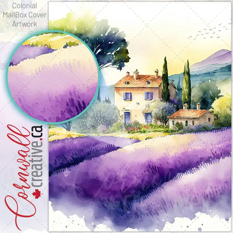 Cottage and Tree in the Lavenders Colonial Mailbox Cover