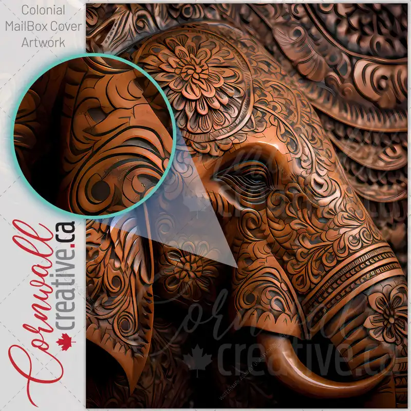 Tooled Leather Elephant Design Colonial Mailbox Cover