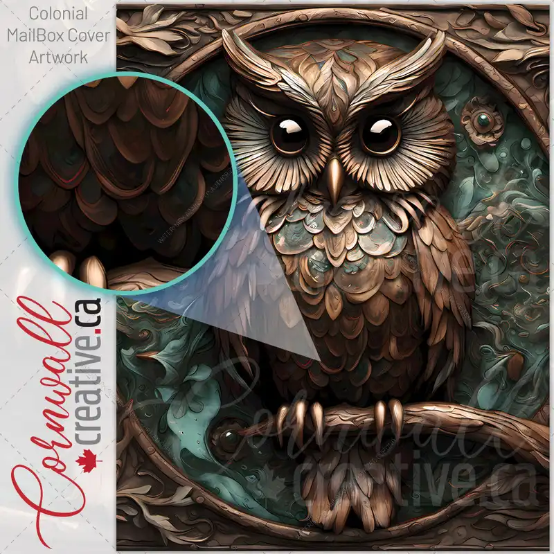 Tooled Leather Brown Owl Colonial Mailbox Cover