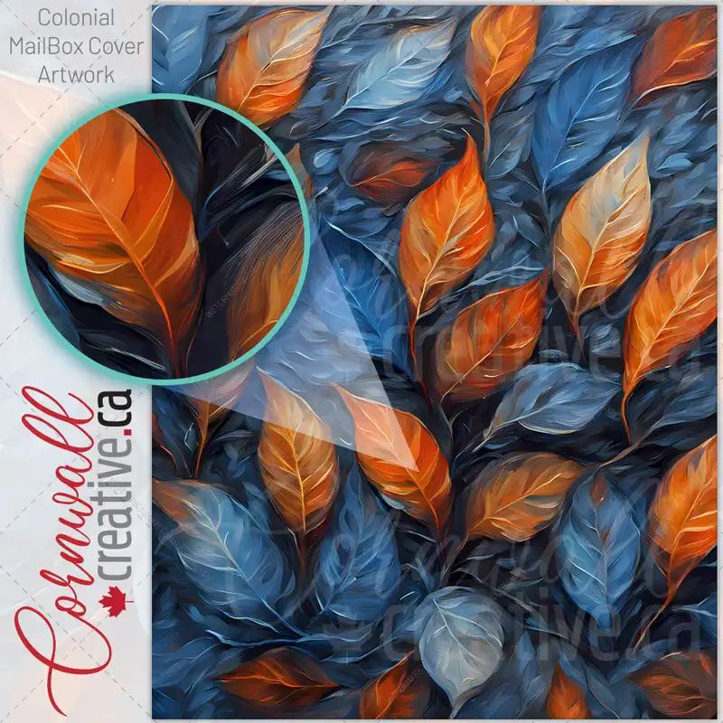 Blue and Orange Boho Leaves Colonial Mailbox Cover