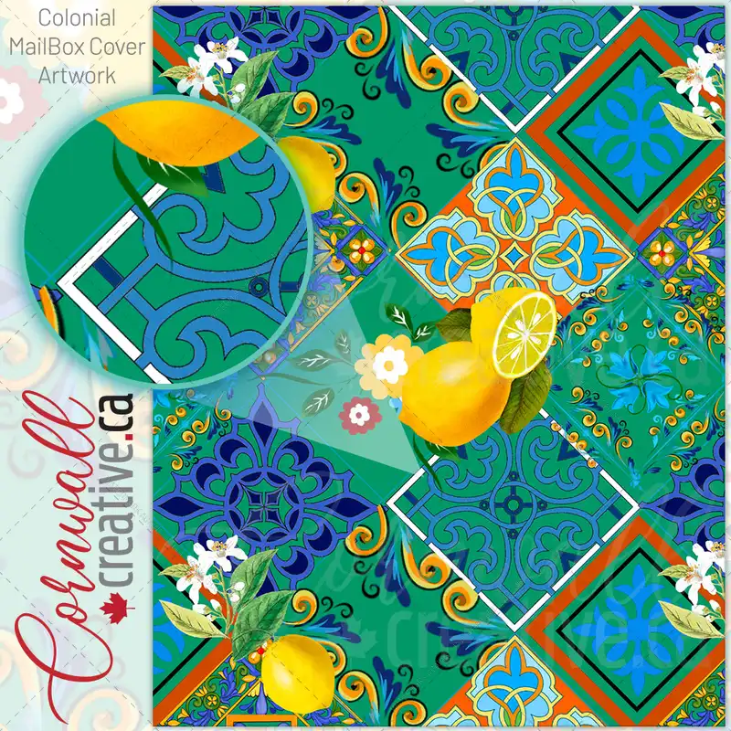 Italian Lemon Folk Design Colonial Mailbox Cover