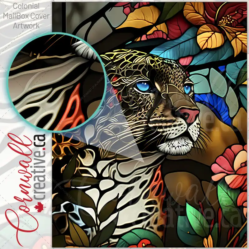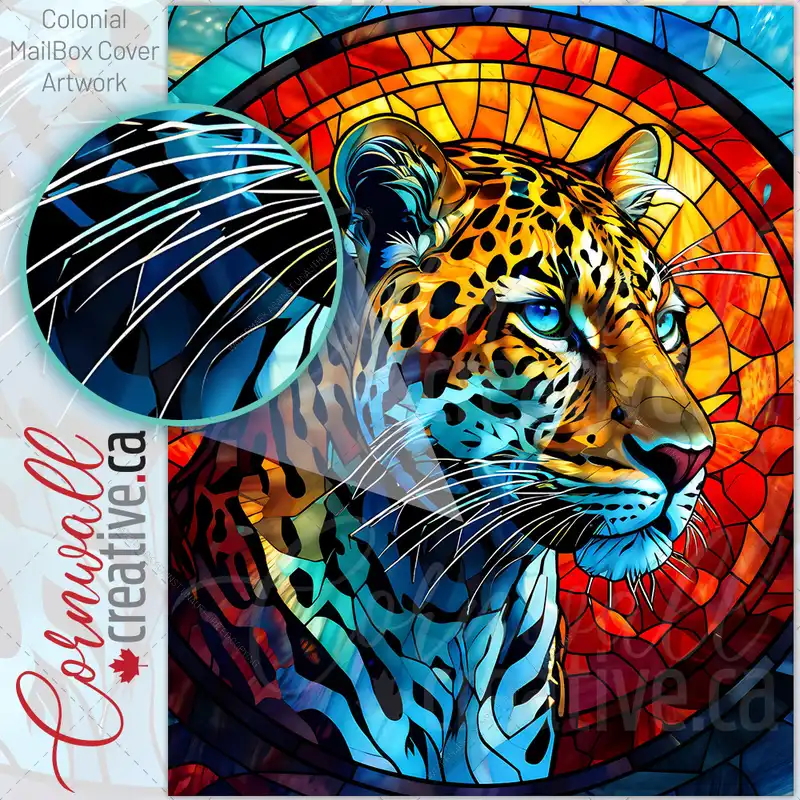 Stained Glass Leopard Design Colonial Mailbox Cover