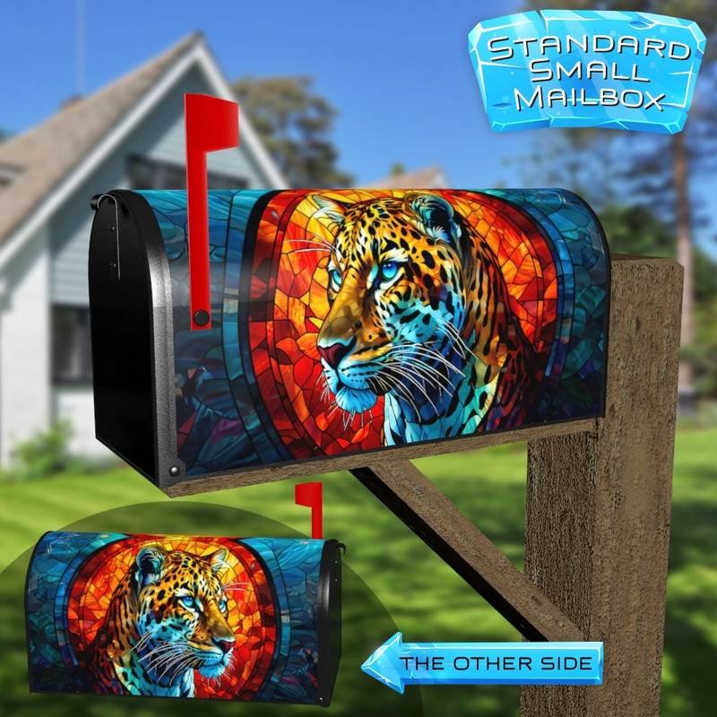 Colorful Stained Glass Leopard Rural Farm Mailbox Cover