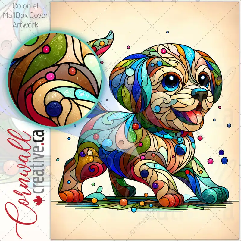 Little Stained Glass Puppy Colonial Mailbox Cover