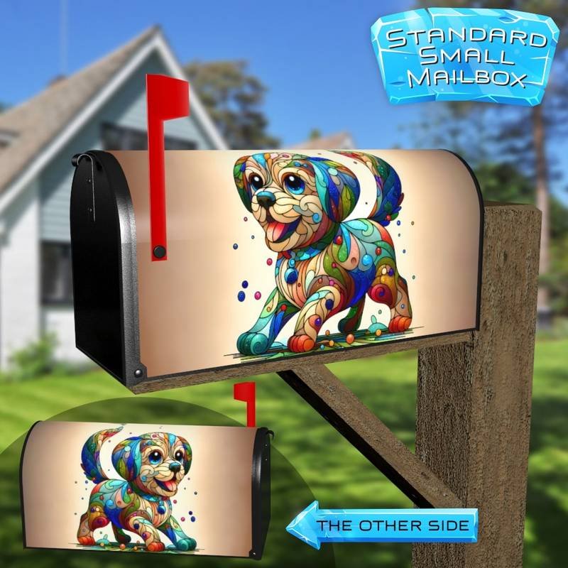 Little Stained Glass Puppy Rural Farm Mailbox Cover