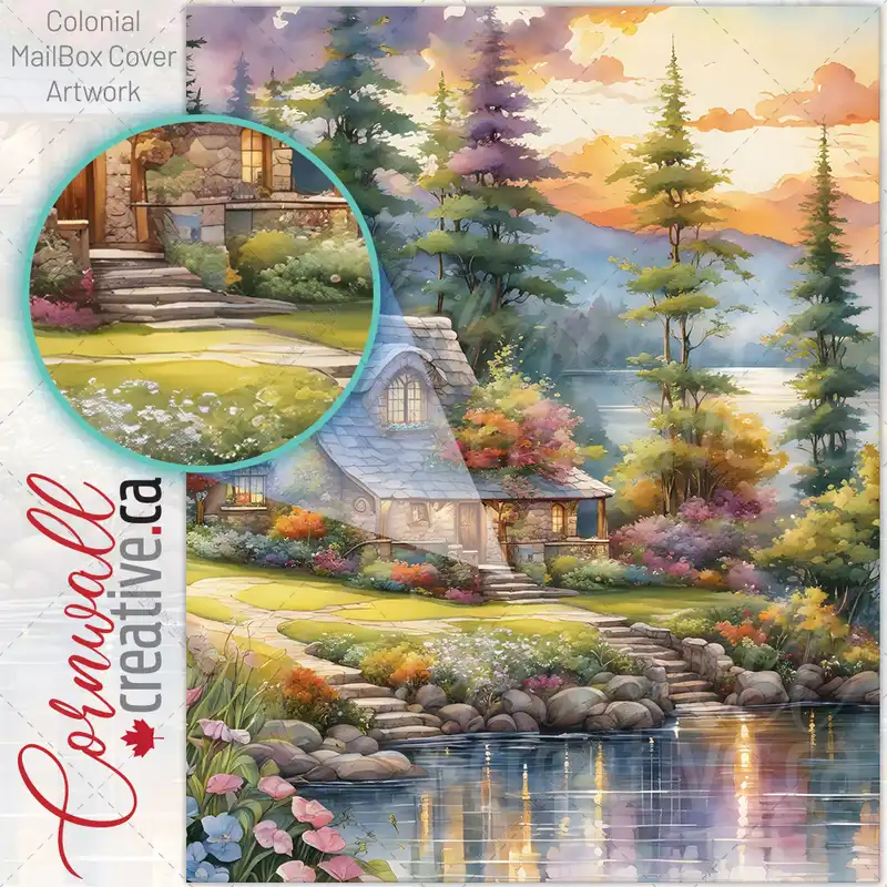 Little Summer Cottage by the Lake Colonial Mailbox Cover