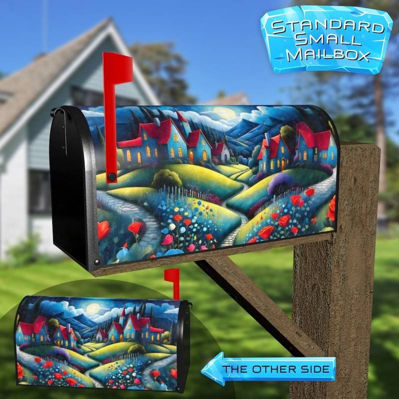 Little Village at Night Wall-mounted Townhouse Mailbox Cover