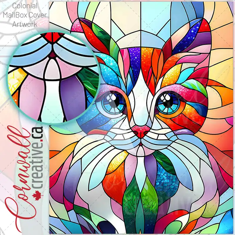 Stained Glass Little Kitten Colonial Mailbox Cover