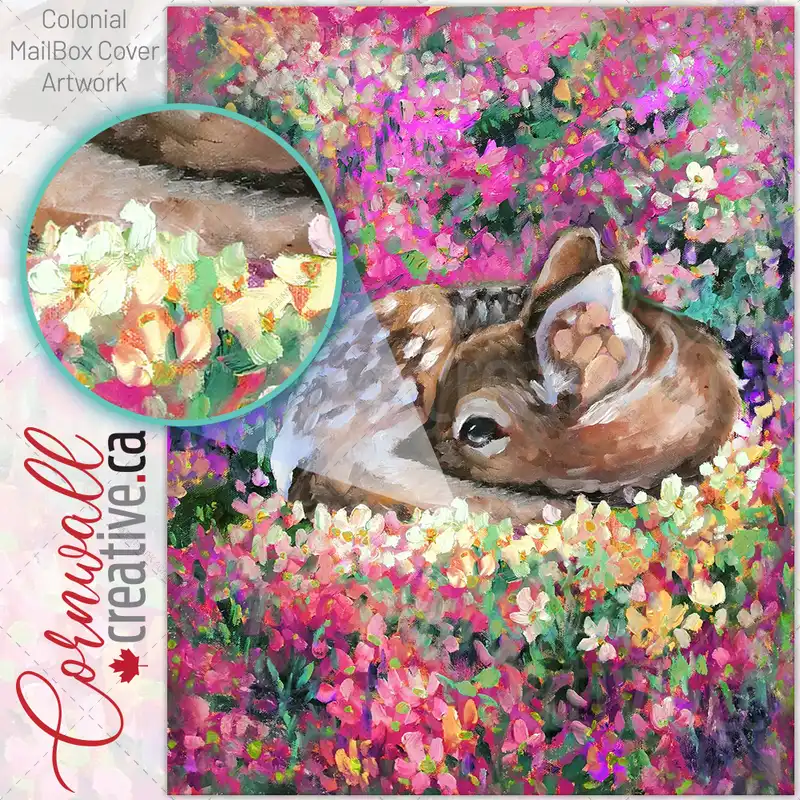 Little Baby Fawn in the Flower Meadow Colonial Mailbox Cover