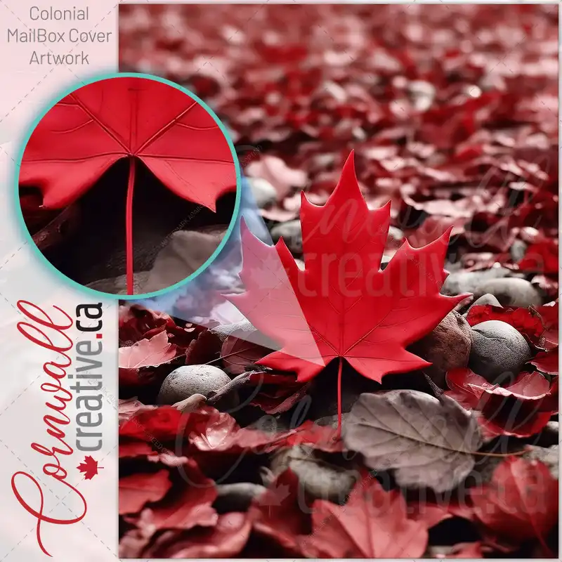 Canada Day Red Maple Leaf Surrounding Red Leaves and White Stones Colonial Mailbox Cover