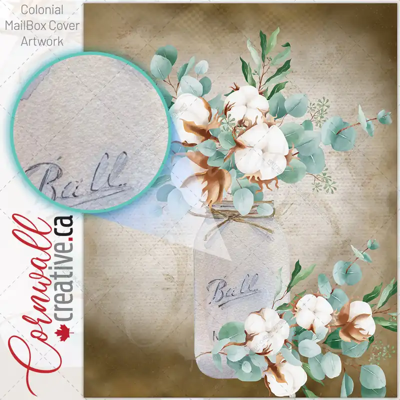 Cotton Bouquet in a Mason Jar Colonial Mailbox Cover