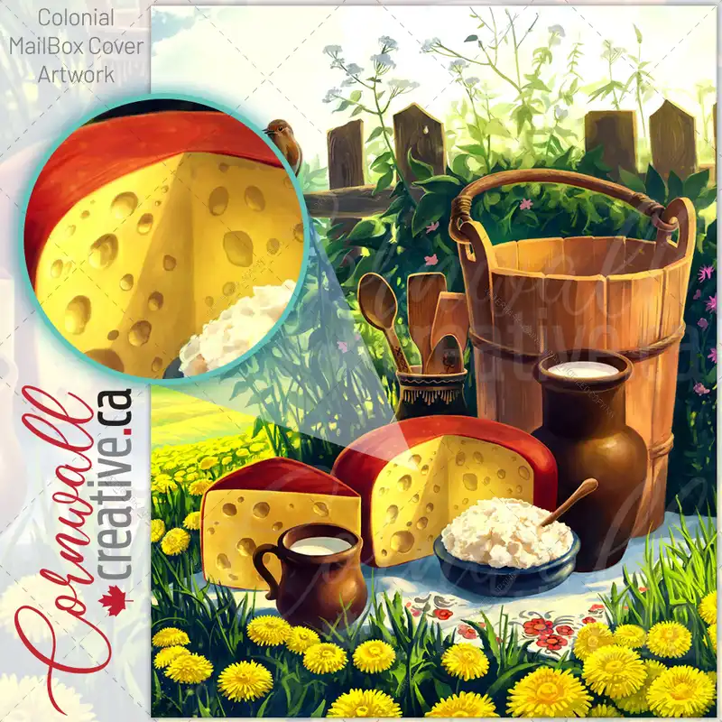 Picnic on the Milk Farm Colonial Mailbox Cover