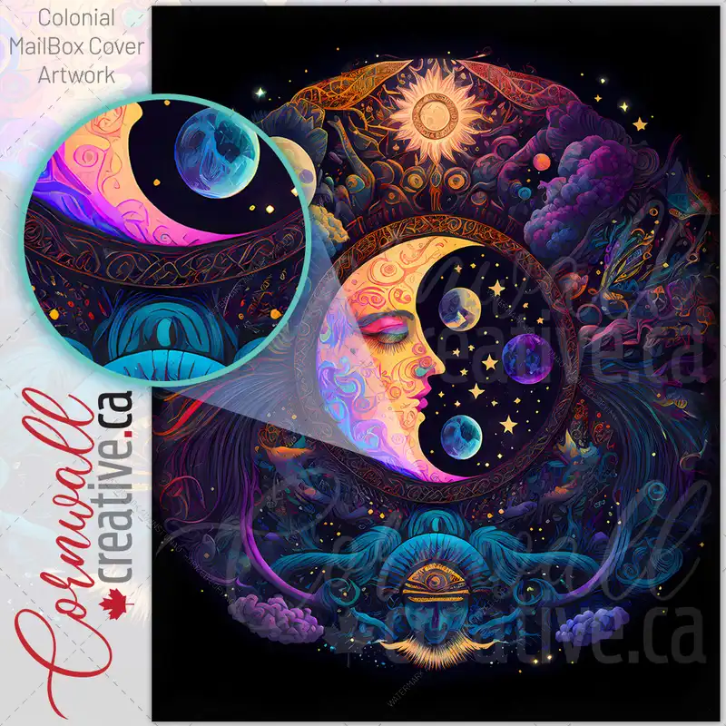 Bohemian Moon and Sun Colonial Mailbox Cover