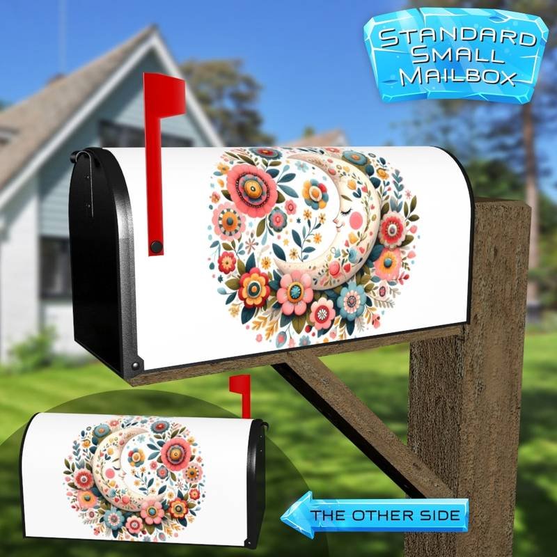 Bohemian Folk Moon and Flowers Rural Farm Mailbox Cover