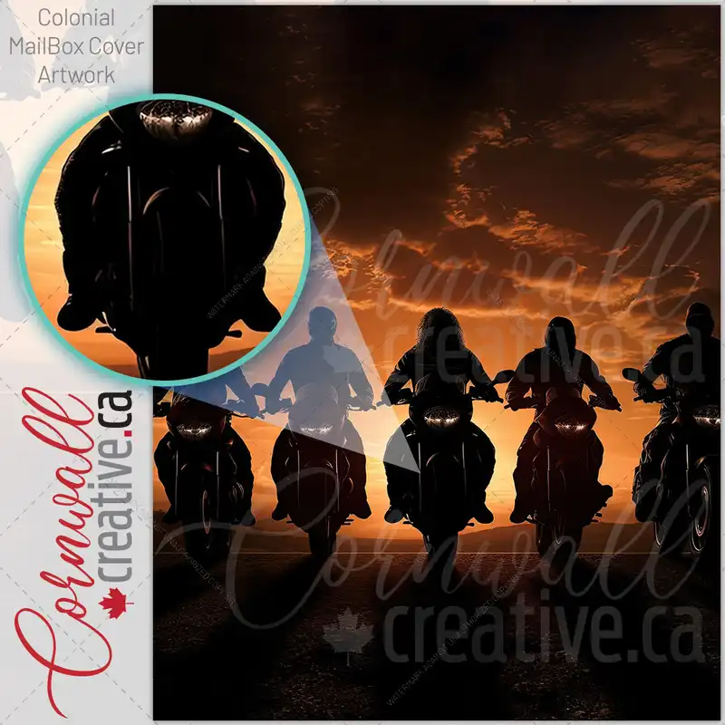 Motor bikers Silhouette At Sunset Colonial Mailbox Cover