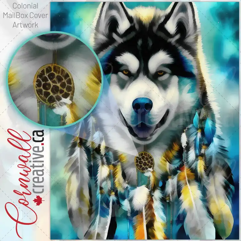 Native Husky with Feathers Wall-mounted Townhouse Mailbox Cover