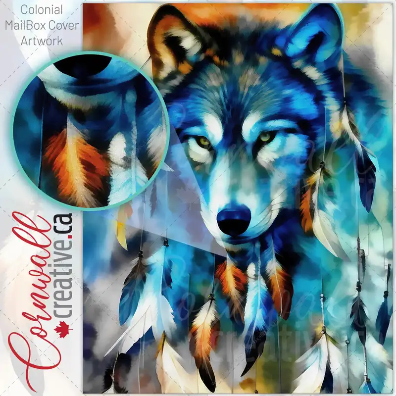 Native Wolf with Feathers Colonial Mailbox Cover