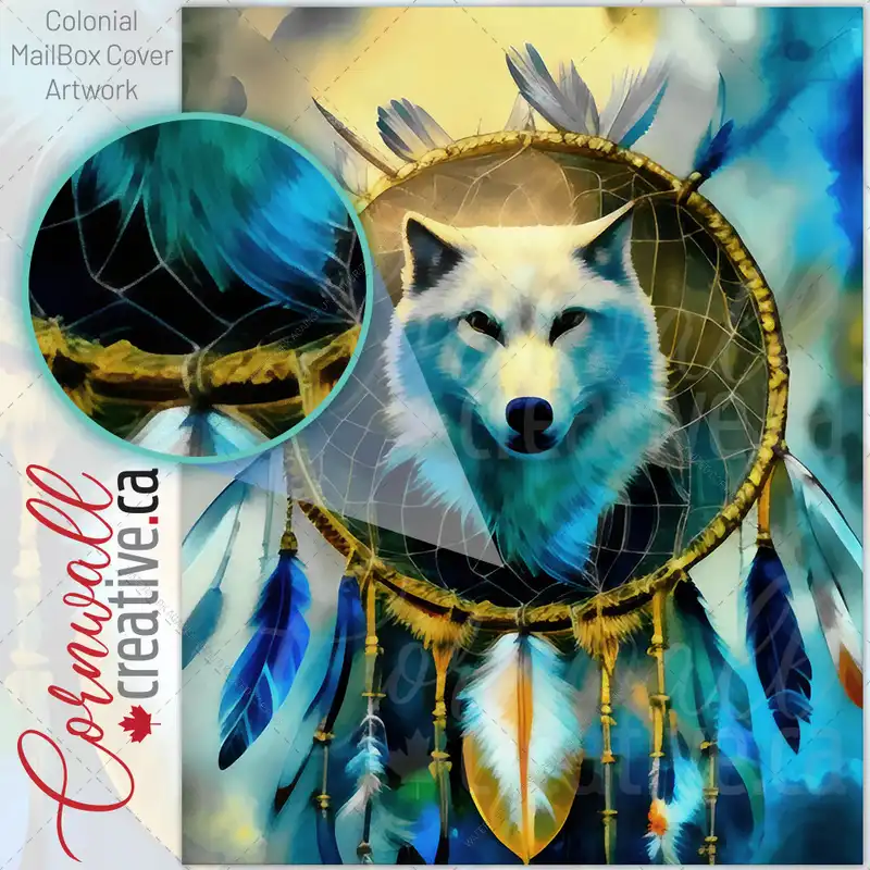 Native Wolf Dreamcatcher Colonial Mailbox Cover