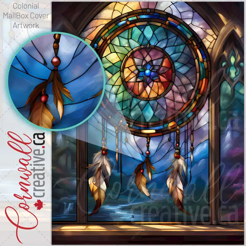 Stained Glass Native Dreamcatcher Colonial Mailbox Cover