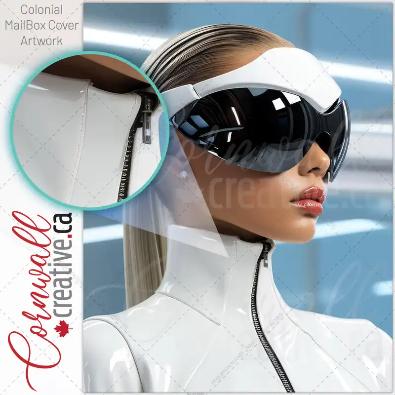 Cybernetic Space Fashion Model In Sleek Monochrome Outfit Colonial Mailbox Cover